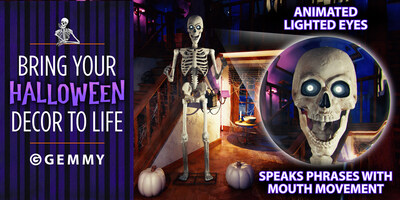 DALLAS, Sept. 3, 2025 /PRNewswire/ -- Glowing animated eyes, poseable limbs, and a moving jaw that syncs to spine-chilling spoken phrases make this towering skeleton the perfect addition to your spooky setup.